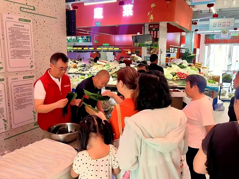 在市投集市未來路農貿市場,市場組織的“粽情端午,樂購市投”活動,吸引了眾多周邊社區居民熱情參與,大家共聚一堂,包粽子、品美食、享優惠,在歡聲笑語中感受傳統節日的魅力。