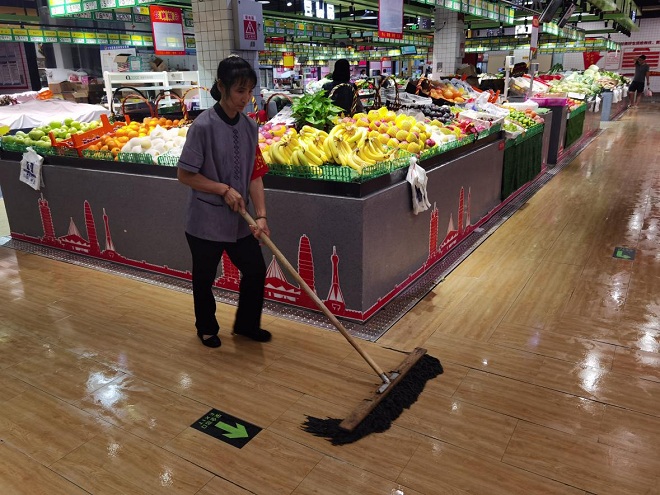 農(nóng)業(yè)公司安全小組人員立即啟動防汛安全應(yīng)急預(yù)案,對市場易積水點、漏水點、排水口進行檢查清理,做到積水及時排放,防止下水口堵塞、雨水積存,并鋪防水腳踏墊,全天候清掃保潔,豎立標(biāo)識,引導(dǎo)市場商戶、購物群眾注意防滑安全。對容易出現(xiàn)水電火災(zāi)的插排、線路、交換點等進行防水處理,防止火災(zāi)、觸電現(xiàn)象發(fā)生,及時發(fā)布災(zāi)害預(yù)警信息和防災(zāi)避災(zāi)辦法到市場商戶群,督促各商戶從業(yè)者積極做好氣象災(zāi)害預(yù)防工作,做好市場必需品供應(yīng),保障惡劣天氣物價穩(wěn)定。